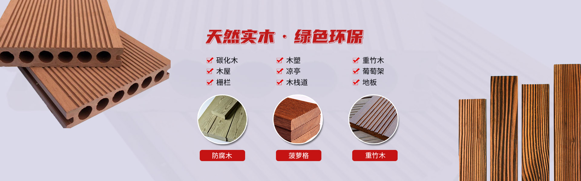 主營產品:批發防腐木,碳化木,木塑,菠蘿格,重竹木,木屋,涼亭,葡萄架,柵欄,木棧道,地板。